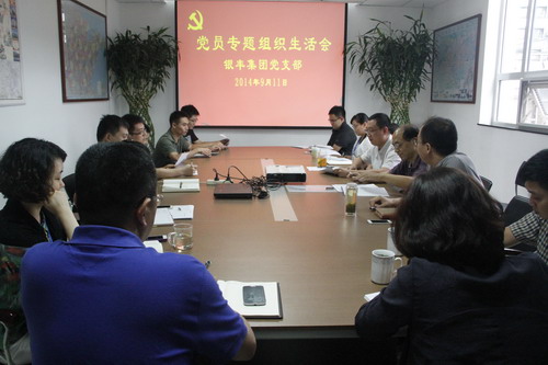 2014年9月11日,山東銀豐投資集團有限公司黨支部專題組織生活會在集團會議室召開,控股集團總部12名黨員參會,舜玉街道辦事處黨工委張文輝副書記、黨辦齊巍巖主任出席會議并監督指導。
