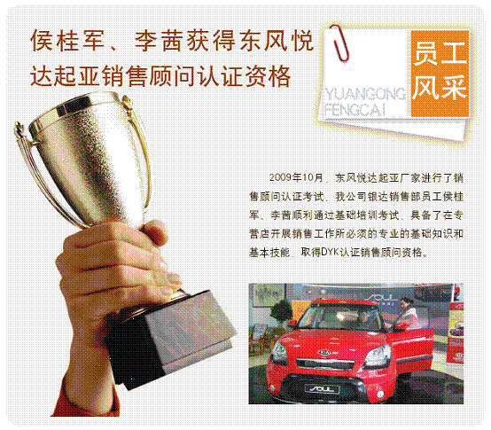 侯桂軍、李茜獲得東風悅達起亞銷售顧問認證資格!