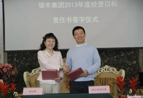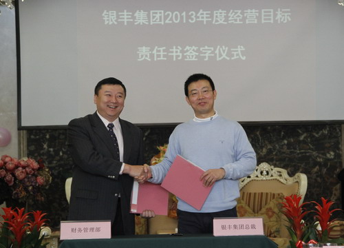 隨后王偉董事長宣讀了銀豐集團2013年度經營目標責任書,并分別與副總裁及各部門簽署了2013年度經營目標責任書。