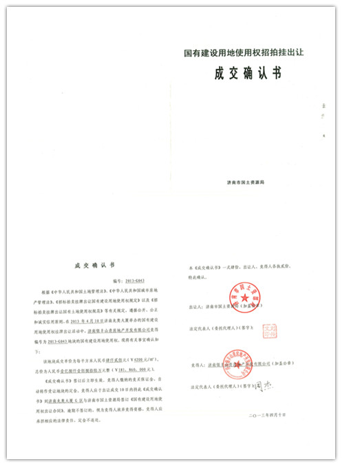 濟南銀豐山青房地產開發有限公司成功摘得土地并簽訂《成交確認書》