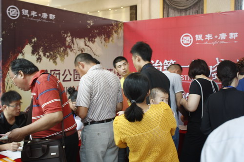 銀豐·唐郡項目【唐冶第一街】定于2014年8月30日上午9點18分開盤,但是在銀豐·唐郡項目營銷中心,早晨8點不到便已擠滿了客戶。開盤現場采取搖號選房的方式決定選房順序,客戶滿懷期待依次選定看中的房源。短短一小時的時間,【唐冶第一街】項目幾近售罄。