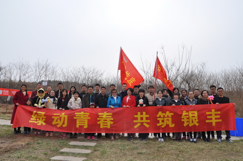 2016年3月12日,銀豐集團工會、銀豐集團團委、銀豐地產集團團總支聯合主辦的“綠動青春、共筑銀豐”義務植樹活動在銀豐唐郡圍子山舉行。銀豐集團副總裁彭秀玲、青年員工等60余人參加。活動更吸引了眾多銀豐地產新老業主前來參加。