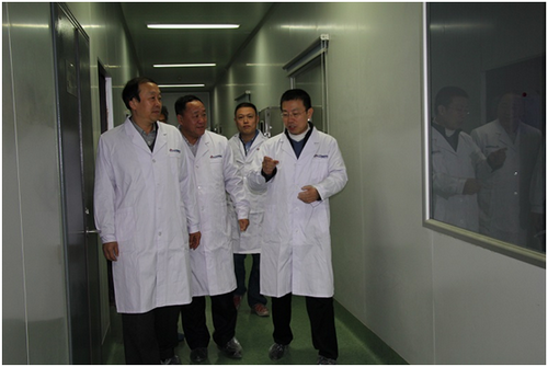 2016年3月14日下午,濟南市高新技術開發區管委會副主任高如同、高新區生命科學城發展中心主任王思國及相關職能部門負責人一行四人蒞臨銀豐生物集團調研。銀豐集團董事長王偉、銀豐生物集團董事長彭秀玲、總裁生德偉等陪同參觀了山東省臍血庫實驗室和細胞治療公司實驗室,并一同座談交流。