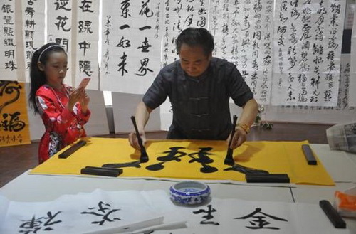 本次展覽共分作品鑒賞、書畫攝影學會掛牌和現場創作三個環節。活動現場吸引了很多熱愛書畫、攝影的業主前來參觀交流。幾位業主即興現場揮毫潑墨,妙筆生花!