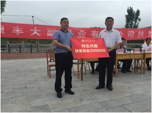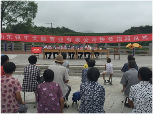 儀式上,山東銀豐大融置業有限公司與雙泉鎮柳杭村結成幫扶對子,現場捐獻扶貧資金、扶貧物資一宗,并針對失學兒童、殘疾人及孤寡老人分別給予教育助學金及相關幫扶物資。