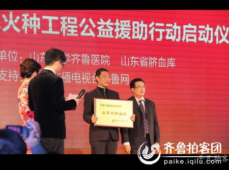 晚會現場齊魯網總編輯譚魯民、山東大學齊魯醫院侯懷水教授,共同啟動了“火種工程”官方網站正式上線,并同山東省臍血庫總監韓鎮先生舉行了授旗和公益企業牌匾儀式。