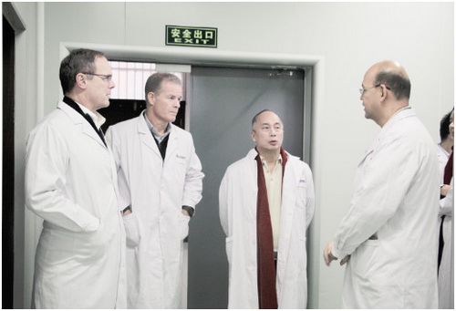 UC Davis專家一行先后參觀了山東省臍血庫、銀豐基因科技實驗室、細胞治療實驗室。銀豐生物集團研發部總監黃昕華從銀豐生物集團的發展歷程說起,詳細介紹了臍帶血制備的主要流程、干細胞的臨床應用、基因檢測技術及細胞治療業務未來廣闊的發展前景。UC Davis兩位專家對實驗室儀器設備給予了認可,并高度肯定了銀豐生物在生物醫學方面取得的成就,同時,表示美國也正積極推動生物細胞、基因檢測方面的研究和應用。