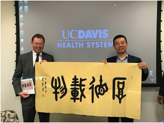 2017年5月4日,銀豐集團王偉總裁一行8人由薩克拉門多市中國代表處首席代表容承澤先生陪同,訪問美國加利福尼亞大學戴維斯醫療(以下簡稱“UCD”)。