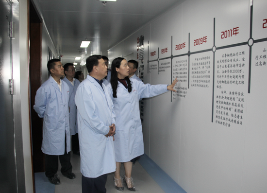 隨后,調研領導參觀了山東齊魯細胞治療工程技術有限公司(以下簡稱“細胞治療公司”)實驗室,細胞治療公司是山東省最大的人體免疫細胞醫學治療和科研企業,公司擁有2000多平方米的cGMP標準層流中心實驗室和全省十七個地市的8家分部實驗室,配備了先進的儀器設備,其綜合實力處于全國領先水平。公司總經理郭紅向調研領導介紹了公司的發展歷程、實驗室的核心技術和管理流程等,她表示,本著“奉獻醫療科技,保障人類健康”的經營理念,公司立志于建立一個以細胞制備、檢驗、儲存為中心的公共服務平臺,用最先進的生物技術和產品解除病患痛苦、提高生命質量、造福人類社會。對此,調研領導紛紛表示肯定。