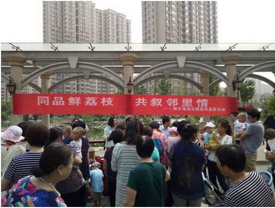 2017年5月22日,銀豐物業分別在銀豐山莊、銀豐花園、康橋頤東和銀豐唐郡等小區項目舉辦“同品鮮荔枝,共敘鄰里情”活動。