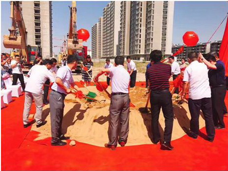 本次開工奠基儀式在位于南城核心,清河南路與臨冊路(沂蒙路)交匯處的銀豐公館工地現場舉辦,羅莊區區委及辦事處各位領導、銀豐地產集團領導、部分企業家代表、合作單位領導以及新聞媒體界人士等匯聚一堂,共同見證了這一榮耀時刻。