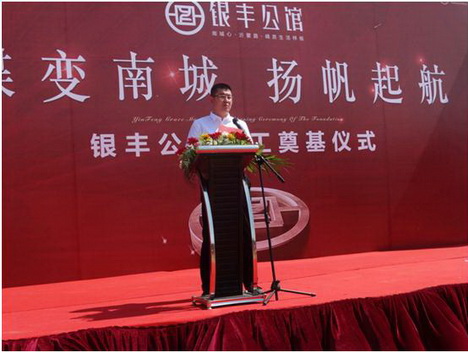 活動伊始,銀豐地產集團臨沂大友置業有限公司總經理周言偉先生,首先上臺致歡迎詞,向與會領導及嘉賓重點介紹了銀豐地產集團布局戰略及銀豐公館項目概況;隨后,銀豐地產集團工程管理部總監姚振先生,登臺做奠基致辭,重點闡述了銀豐地產集團布局臨沂的決心,以及銀豐地產集團對銀豐公館項目的高度重視,承諾銀豐地產集團將以高品質居住社區禮獻臨沂人民。臨沂市同城監理咨詢有限公司李成勝先生從合作單位角度,明確后期工作開展過程中將嚴把質量關,與銀豐地產集團一同樹立高標準建筑標桿。