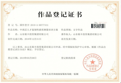 銀豐集團《中高層人才鑒別性素質(zhì)測量培訓方案?》獲國家注冊版權(quán)