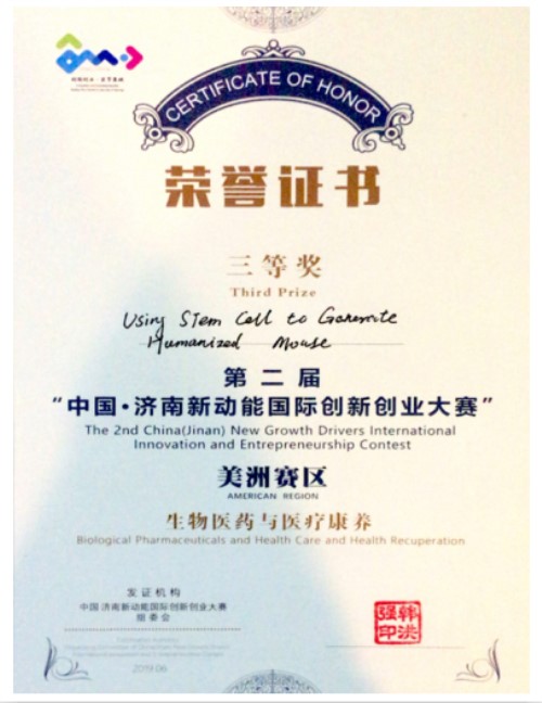 銀豐生物美國公司報名的2個項目成功突圍參加到?jīng)Q賽。其中“利用臍血干細胞生產(chǎn)人源化免疫系統(tǒng)小鼠”項目經(jīng)過激烈角逐榮獲三等獎,并將回國參加在濟南舉辦的高層次人才創(chuàng)新創(chuàng)業(yè)大賽的決賽。