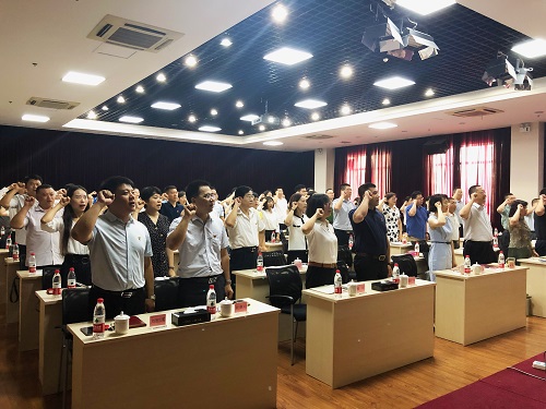 會(huì)議由黨委辦公室主任李亞主持,首先全體黨員重溫了入黨誓詞。面對(duì)鮮紅的黨旗,每一位黨員都高舉右拳,字字鏗鏘,重溫了入黨的初心、決心和信心。