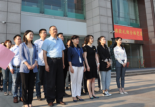 盛世華誕,舉國歡慶。9月30日上午八時許,沐浴著清晨的陽光,伴隨著雄壯的國歌聲, 鮮艷的五星紅旗冉冉升起,在場的全體黨員、干部、員工肅穆而立,滿懷崇敬之情向國旗行注目禮,共同表達對祖國70華誕深深的祝福。