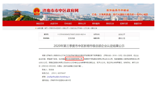 近日,濟(jì)南市市中區(qū)人民政府公布了2020年第三季度市中區(qū)新增市級(jí)總部企業(yè)認(rèn)定結(jié)果,市中區(qū)4家企業(yè)被認(rèn)定為濟(jì)南市總部企業(yè),銀豐投資集團(tuán)有限公司榜上有名。