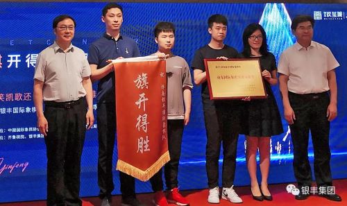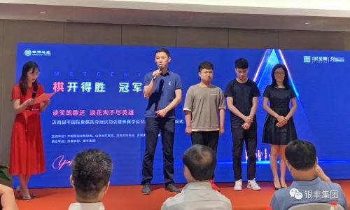 6月12日,濟(jì)南銀豐國際象棋隊(duì)奪冠慶功會(huì)暨新賽季及世界城市聯(lián)賽出征儀式在濟(jì)南銀豐華美達(dá)酒店舉行。眾多棋屆大腕、省市領(lǐng)導(dǎo)到場(chǎng)祝賀,濟(jì)南銀豐隊(duì)獲頒“山東國際象棋突出貢獻(xiàn)獎(jiǎng)”,并喊出“棋開得勝,冠軍力量”的口號(hào),準(zhǔn)備出征中國城市國象聯(lián)賽新賽季和世界城市國象聯(lián)賽。