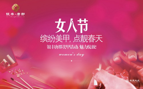 2013年3月9日-3月10日,銀豐唐郡“繽紛美甲 點亮春天”美甲DIY活動于營銷中心魅力綻放。本次活動借女人節契機為愛美的女士們上演了一場炫彩奪目的美甲彩妝秀。活動現場特邀的專業美甲師為女士們設計并制作了個性漂亮的美甲款式,也指導來賓們為自己或家人好友創意DIY,讓指尖綻放繽紛靚麗,為春天盛放美麗心情。